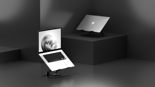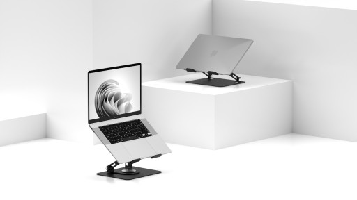 ➡️ Dwupunktowa regulacja pozwala ustawić laptopa w takiej pozycji, abyś mógł komfortowo korzystać z laptopa, oszczędzając jednocześnie miejsce na biurku.