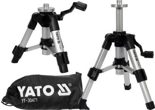 Statyw aluminiowy (tripod) do stabilnego mocowania urządzeń optycznych i pomiarowych, takich jak lasery budowlane, poziomnice laserowe, dalmierze, a także aparatów fotograficznych i innych przyrządów posiadających przyłącze gwintowane 5/8" lub 1/4".