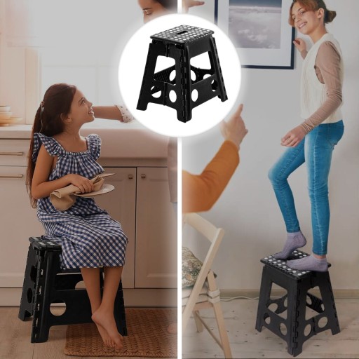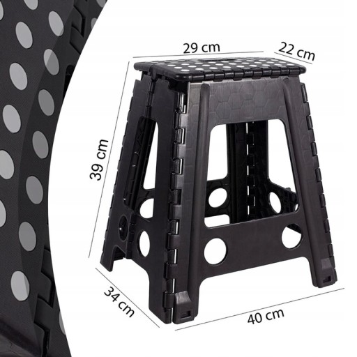 TABORET SKŁADANY KRZESŁO STOPIEŃ ANTYPOŚLIZGOWY CZARNY DRABINKA 39CM STOŁEK