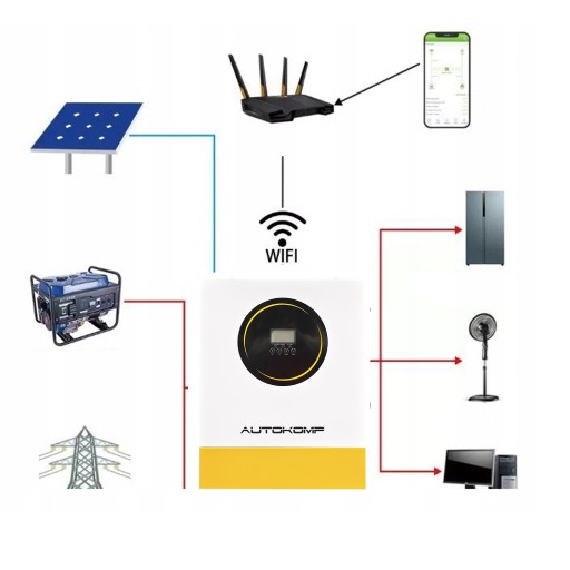 Prezentowany inwerter solarny przeznaczony jest do budowy niezależnych systemów zasilania Off-grid 230V opartych o energię pozyskiwaną z paneli PV, sieci energetycznej i akumulatorów.