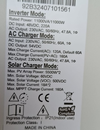 - Maksymalna moc wejściowa PV 5500W + 5500W = 11000W