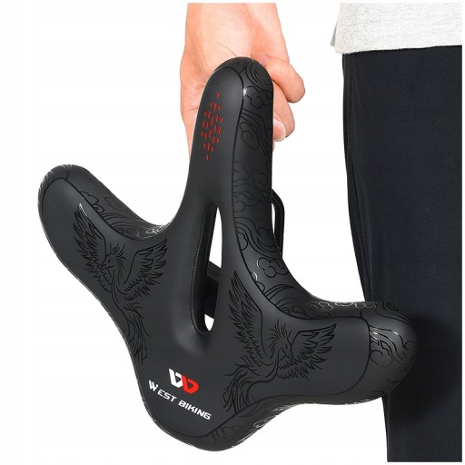 - Poduszka siedziska przyjmuje pustą i oddychającą konstrukcję, która nie jest duszna i gorąca podczas jazdy na długich dystansach;