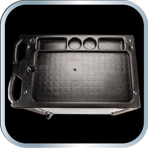 Szeroki blat roboczy z wytrzymałego kompozytu wraz z wnękami na drobiazgi oraz dedykowanym miejscem na imadło podnoszą użyteczność produktu.