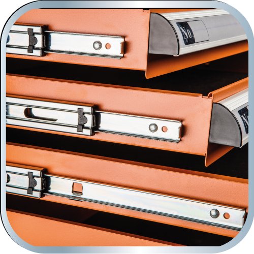 Szafka posiada 6 praktycznych szuflad na narzędzia, zamykanych za pomocą zamka centralnego
