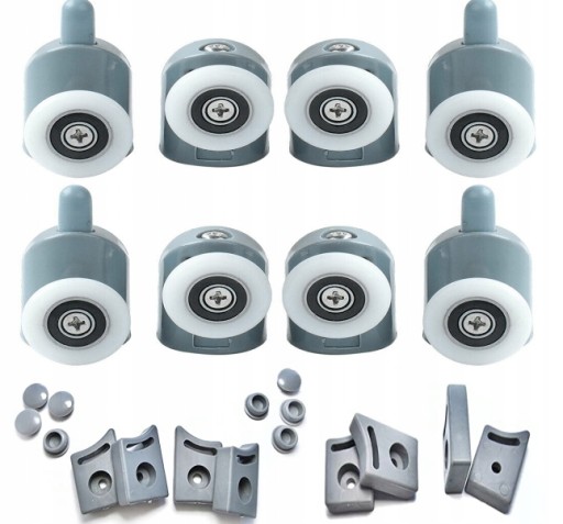 - UNIWERSALNE – rolki zostały wykonane z tworzywa sztucznego, nylonu oraz stali odpornej na korozję. Pasują do wszystkich kabin prysznicowych w których zastosowano tego typu łożyska kulkowe. Rolki wraz z kółkami dopasowują się do kształtu prowadnicy.