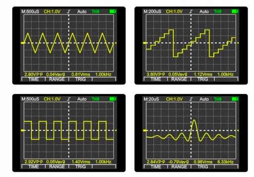 - Dodatkowy wyświetlacz funkcji oscyloskopu: VP-P, wartość średnia, wartość skuteczna, częstotliwość, podstawa czasu, amplituda (zwiększona funkcjonalność)
