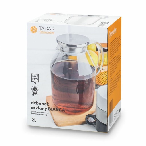 Dzbanek szklany borokrzemowy z serii Bianca marki Tadar to produkt wyjątkowy z kilku powodów. Przede wszystkim doceniany jest za niezwykłą funkcjonalność i trwałość. Dzbanek wykonany został ze szkła borokrzemowego. To transparentny materiał, który wyróżnia się odpornością na uszkodzenia oraz wysokie temperatury. Dzięki temu możesz w nim przygotować zarówno zimną lemoniadę na upalne dni, jak i ciepłą herbatę na zimowe i jesienne wieczory. Ponadto w jego pokrywce umieszczono metalowe sitko ze stali nierdzewnej, które sprawia, że do napoju nie dostaną się fusy, pestki cytryny czy liście mięty. Dzbanek szklany borokrzemowy 2 l to zatem bardzo uniwersalne naczynie, którego możesz używać przez cały rok. Dzięki temu to niezbędne wyposażenie jadalni.
