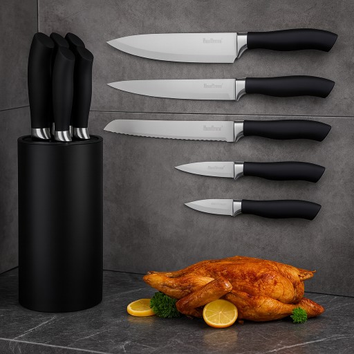 ZESTAW 5 NOŻY KUCHENNYCH W BLOKU HR602-1 KOLOR -CZARNY