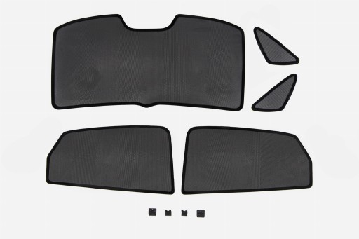 - Komplet 5 sztuk zasłonek magnetycznych (cztery na tylne boczne szyby i jedna na szybę klapy tylnej) + dodatkowe elementy montażowe