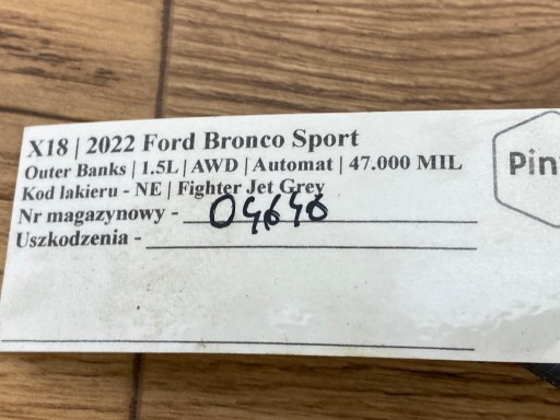 Króciec wody Ford Bronco Sport 2020+ USA