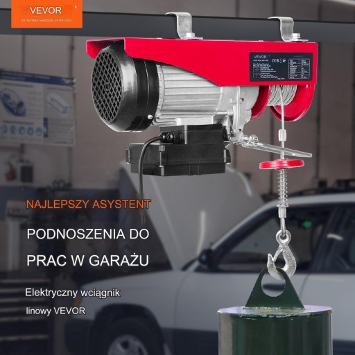 To urządzenie do podnoszenia w garażu może łatwo podnosić małe silniki, skrzynie biegów, duże narzędzia warsztatowe lub materiały budowlane. Pojemność: 125 kg (pojedyncza lina), 250 kg (podwójna lina).