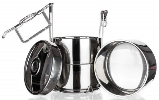 Termos obiadowy AKCENT 4 części stal nierdzewna dwuścienna 4 częściowy pojemnik dwuścienny ze stali nierdzewnej AKCENT jest przeznaczony do przenoszenia żywności i gotowych pokarmów Komplet zawiera 4 miski ze stali nierdzewnej o średnicy 16 cm i wysokości 7,5 cm Pojemność każdej miski 1,1 l Dzięki wykonaniu dwuściennemu jest praktyczny do przechowania gorących potraw podczas przenoszenia i zapobiega wystyganiu,