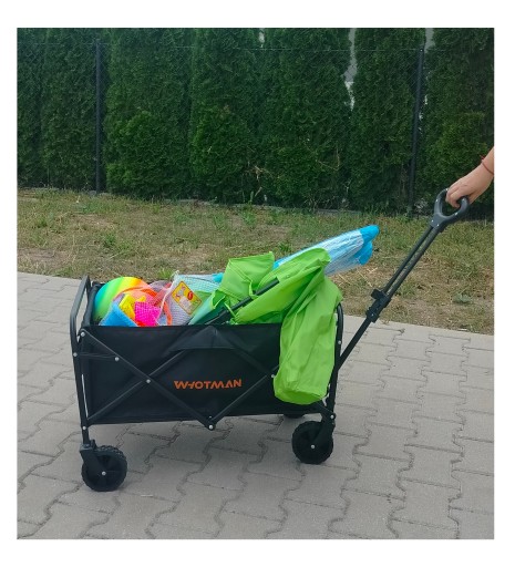 ✔️ Składana konstrukcja wózka umożliwia złożenie go do kompaktowych rozmiarów w zaledwie około 10 sekund. Wózek jest łatwy do transportu, co pozwala na swobodne zabranie go na plażę, w góry czy na działkę, bez obaw związanych z ograniczonym miejscem w bagażniku.