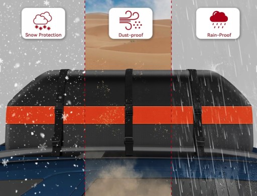 - WYSOKA JAKOŚĆ MATERIAŁÓW: Torba na dach samochodu wykonana jest z wysokiej jakości materiału Oxford 600D z powłoką PVC, co zapewnia jej wyjątkową trwałość i odporność na warunki atmosferyczne. Dzięki podwójnym szwom i wodoodpornym zamkom błyskawicznym, bagaż pozostaje bezpieczny, suchy i zabezpieczony przed kurzem oraz wilgocią, co czyni ją idealnym rozwiązaniem na każdą pogodę.