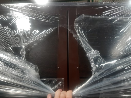 - zamek z klamką i wkładką na klucz skrzydło prawe , skrzydło lewe zasuwa od środka