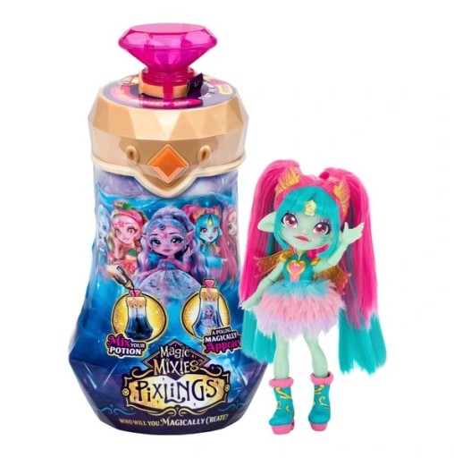 Twoje dziecko będzie oczarowane, gdy wejdzie do zaczarowanej krainy Magic Mixies Pixlings i stworzy magiczną miksturę, która odkryje magiczny Pixling Amber! Z krainy, w której mikstury wypływają z wodospadów i fontann, dziewczyny mogą przygotowywać własne, specjalne mikstury, aby w magiczny sposób odsłonić tę piękną lalkę Pixling. Następnie wypowiedz magiczne słowa, obróć się i naciśnij Kryształowy Klejnot. Uwalniając swojego magicznego smoczego ducha, Amber odważnie podejmuje każde wyzwanie. Jej moc mikstury to „Wewnętrzna siła”! Jest 5 różnych Pixlingów, które dziewczynki mogą w magiczny sposób tworzyć i kolekcjonować! Każda lalka o długości 16,5 cm ma 7 punktów artykulacji, długie, szczotkowane włosy, mistyczny perłowy klejnot na czole, miękkie ubrania z opalizującymi wykończeniami i ręcznie robione buty!