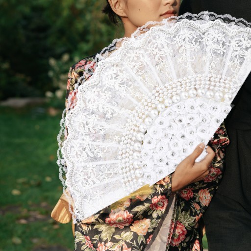 BIAŁE STROJE DLA KOBIET WACHLARZ DO TAŃCA JAPOŃSKI DEKORACJE KORONKOWY SKŁA