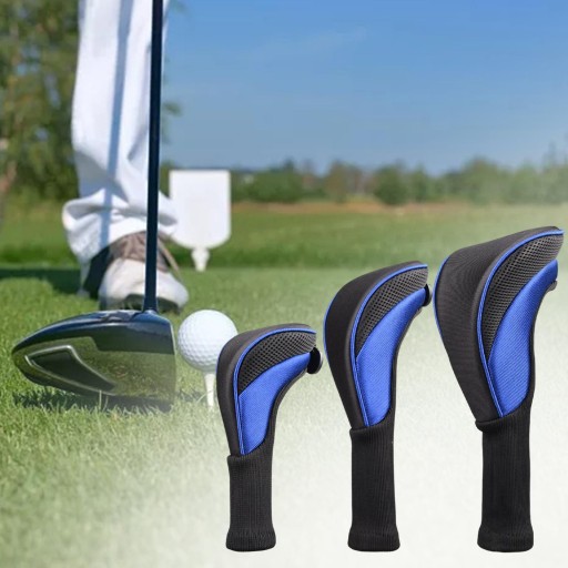 3 sztuk/zestaw pokrowiec na główkę klubu golfowego zestaw nakryć głowy do klubu golfowego zestaw z długą szyją siatka niebieska