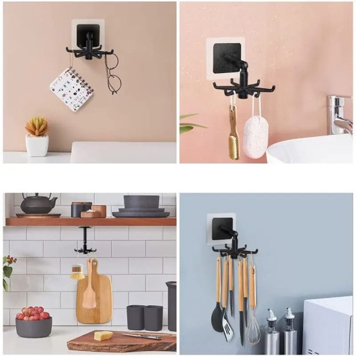 WIESZAK SAMOPRZYLEPNY Z HACZYKAMI HACZYK OBROTOWY KUCHENNY ORGANIZER 360°