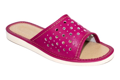 - Pantofle wykonane są z wysokiej jakości skóry ekologicznej, łatwej w utrzymaniu w czystości. Kapcie są bardzo lekkie dzięki czemu stopa może odpocząć. Pantofle posiadają również wkładkę profilującą, która zapewnia prawidłowe ułożenie stopy.