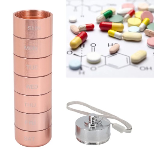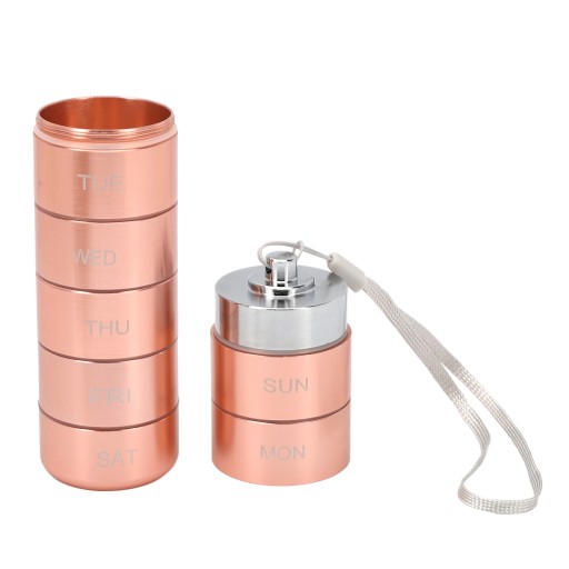 Metalowy tygodniowy organizer na lekarstwa podróżne Przenośne wodoodporne 7-dniowe pudełko na tabletki ze stopu aluminium ze smyczą Różowe złoto