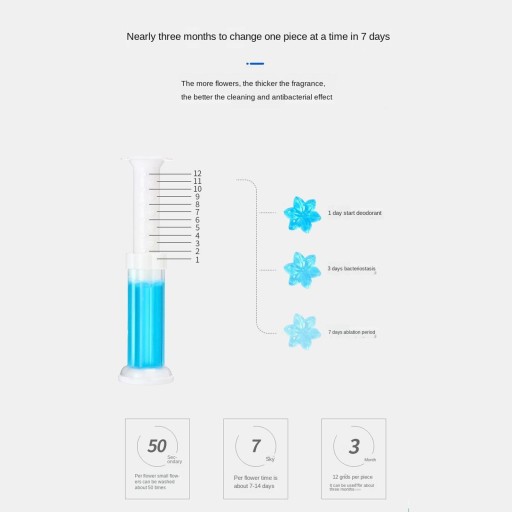 Pieczęć do czyszczenia toalety automatycznie przyczepia się i rozpuszcza. Aktywuje się przy każdym spłukaniu, zapobiegając plamom i gromadzeniu się oraz wydzielając słaby zapach.