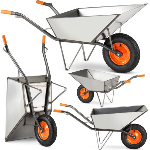 - Surowa, czysta blacha: Nowoczesny wygląd i łatwość w utrzymaniu czystości. Nie musisz martwić się o rysy czy odpryski, ponieważ taczka została zaprojektowana, aby wytrzymać intensywne użytkowanie.