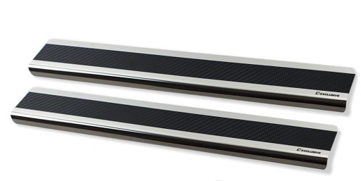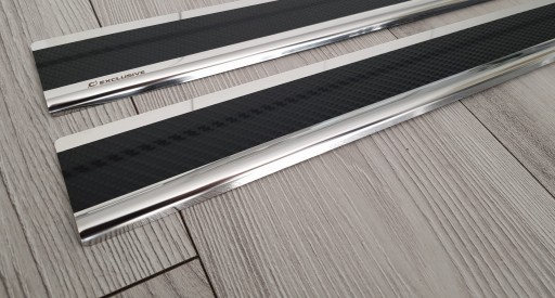 Listwy wykonane są ze stali szlachetnej i dodatkowo oklejone folią carbon. Nakładki dzięki okleinie są jeszcze bardziej odporne na zarysowania niż standardowe listwy stalowe.