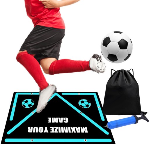 Pakiet zawiera: 1 matę do ćwiczeń piłkarskich, 1 pompkę, 1 rozmiar, 1 torbę do przechowywania