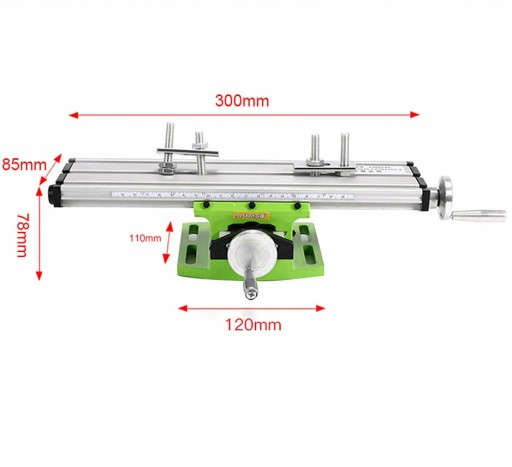 Wymiary stołu roboczego to 310 x 90 mm wraz z dwoma zaciskami roboczymi.