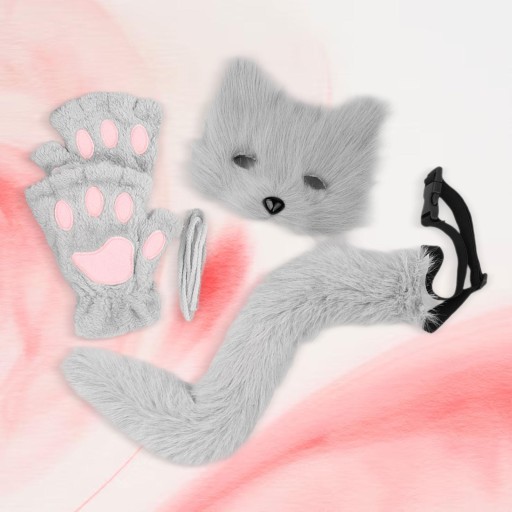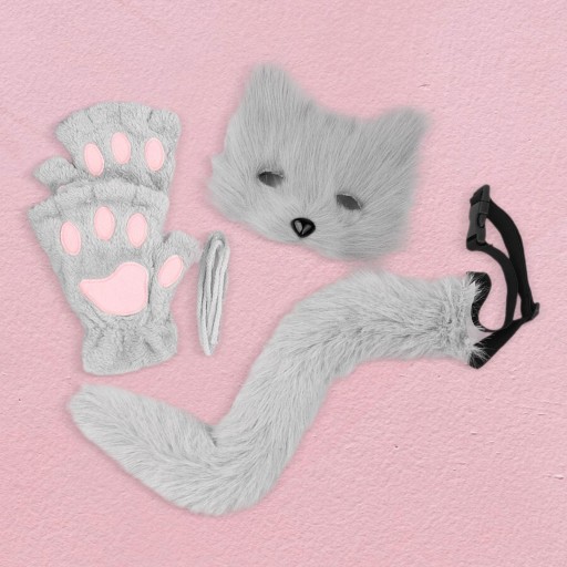 Zestaw maski i ogona Therian dla dziewczynek Uroczy na bal maskowy Halloween Party, szary