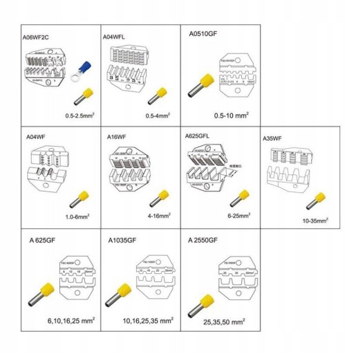 A03C: 20-10AWG (0,5-6 mm²), dla zacisków izolowanych