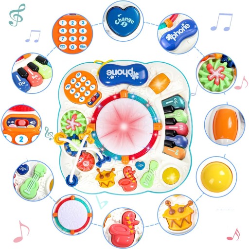 🍭IDEALNY PREZENT DLA DZIECKA: Niezależnie od tego, czy jest to chłopiec, czy dziewczynka, ten wszechstronny instrument muzyczny dla dzieci w wieku od 1 roku życia będzie doskonałym prezentem urodzinowym, prezentem na Halloween, prezentem na Boże Narodzenie i innymi ważnymi prezentami świątecznymi dla chłopców w wieku 1 roku, 2 lat i 3 lat. Co zaskakujące, ten stół do zabawy dla dzieci w centrum aktywności jest odpowiedni dla dzieci do zabawy z rodziną i przyjaciółmi, co sprzyja komunikacji i interakcjom w rodzinie.