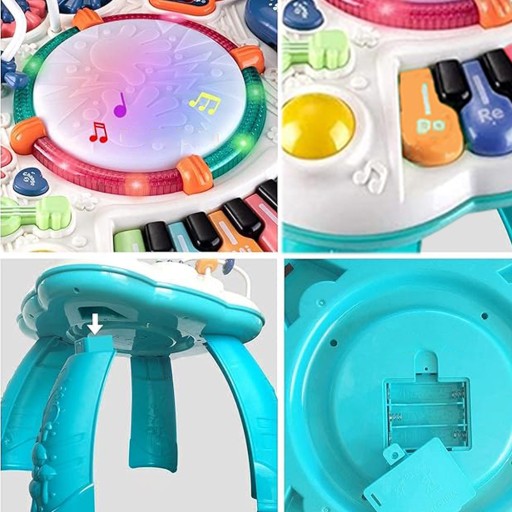 - -Zapewnia różnorodne opcje zabawy, dzieci mogą grać na pianinie, bębnie jedną ręką, kręcić kołami zębatymi, wykonywać połączenia telefoniczne itp.
