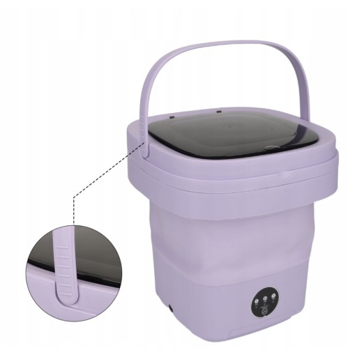 - Mała przenośna pralka jest sprytnie wyposażona w składaną konstrukcję, która ułatwia przechowywanie, łatwo mieści się między półkami lub pod łóżkiem, nie zajmując zbyt dużo miejsca w domu.
