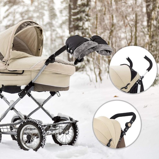 - Istnieje kilka przycisków, dzięki którym łatwo przymocujesz rękawiczki do wózka. Rękawica pozostaje na podstawie osi lub kierownicy wózka spacerowego, dzięki czemu możesz łatwo i szybko wkładać i wyciągać ręce.