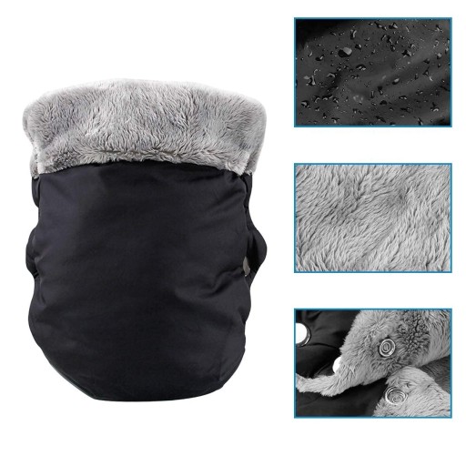 - Rękawiczki pasują do każdego standardowego wózka. Mocowana jest do rączki za pomocą zatrzasków. Po prostu włóż ręce, aby go popchnąć. Wreszcie ciepłe dłonie nawet w lodowatych temperaturach
