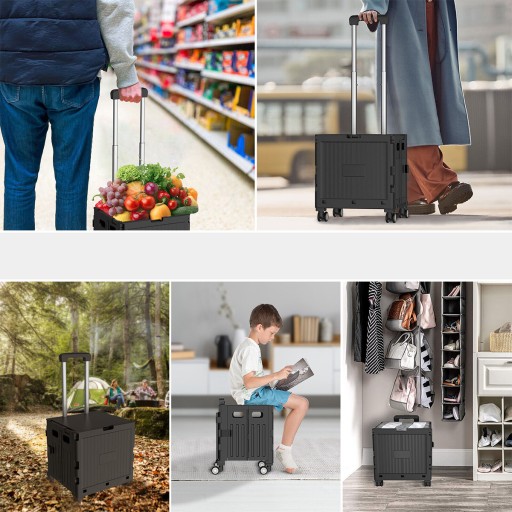 Wielofunkcyjny, składany kosz transportowy z kółkami i wysuwaną regulowaną rączką umożliwiającą jego łatwe przemieszczanie. Używając nie ma znaczenia, czy czeka Cię praca w terenie, jedziesz na rodzinny piknik, ognisko z przyjaciółmi, organizujesz wypad na ryby czy robisz zakupy – teraz do obszernej skrzyni z łatwością spakujesz wszystko, czego potrzebujesz, no i nie musisz już dźwigać.