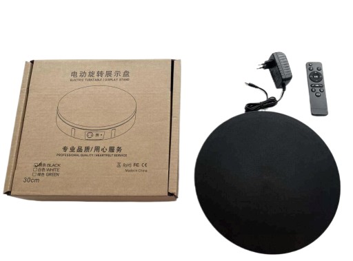 średnica elektrycznej tarczy obrotowej wynosi 30 cm, a maksymalne obciążenie 100 kg. Ma super stabilność i nośność oraz może obsługiwać ciężkie produkty i fotografię modelek. Na spodzie elektrycznego gramofonu znajduje się 6 podkładek antypoślizgowych, które zapobiegają ślizganiu się podczas obracania.