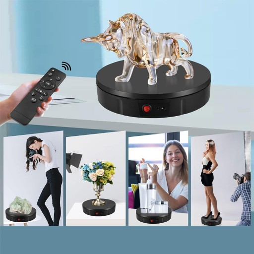 ten elektryczny stół obrotowy zapewnia widok produktu w zakresie 360 stopni. Można go również obracać zgodnie z ruchem wskazówek zegara i przeciwnie do ruchu wskazówek zegara, a także można go regulować tak, aby obracał się w sposób ciągły lub przerywany. Regulowany zakres prędkości wynosi 20-60 sekund/okrąg. Do regulacji można używać pilota, co jest bardzo wygodne.