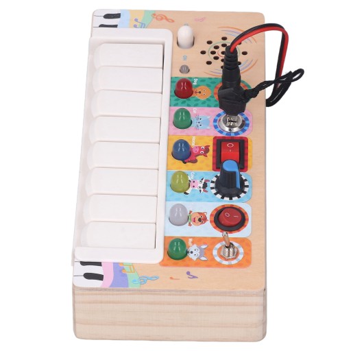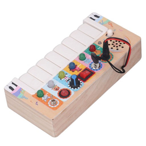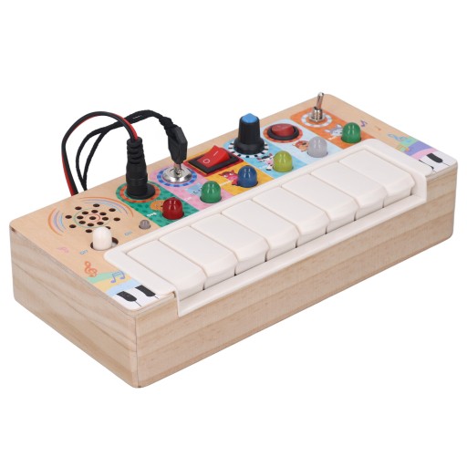 Funkcja:1. Włącznik światła LED: Ta elektroniczna tablica jest wyposażona w diody LED, które emitują delikatne i jasne kolory. Dzieci mogą włączyć odpowiednie światła LED, naciskając klawisz, zapewniając im dobre wrażenia wizualne.