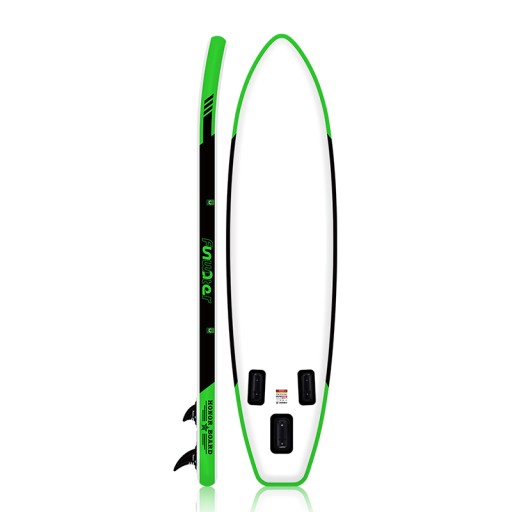Nasza deska SUP słynie z wysokiej jakości konstrukcji, w tym wzmocnionej szkłem włóknistym warstwy kompozytowej PVC o gęstej strukturze. Taka konfiguracja zapewnia znakomitą trwałość i odporność na uszkodzenia, idealnie dostosowując się do różnych warunków wodnych. Dodatkowo, powłoka PVC chroni przed promieniowaniem UV, gwarantując długotrwałe piękno kolorów i integralność materiału. ☀️👍