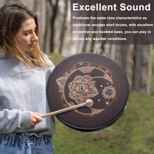 Cechy:✅1. Materiał premium: Dekoracja bębna szamańskiego jest wykonana ręcznie z wysokiej jakości drewna skóry, jest trwała, niełatwa do uszkodzenia i stanowi świetny element dekoracyjny, pełen muzycznej duszy i odżywczych uczuć.