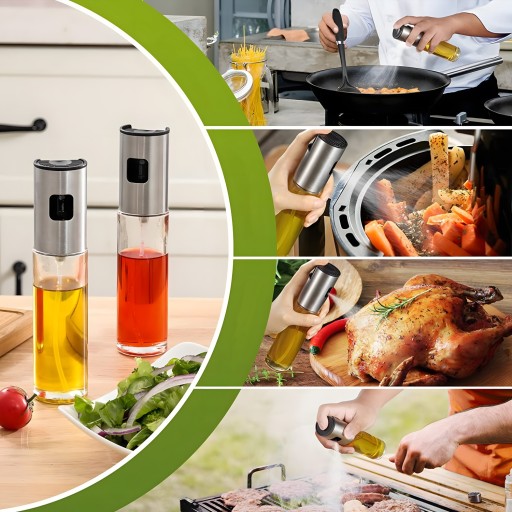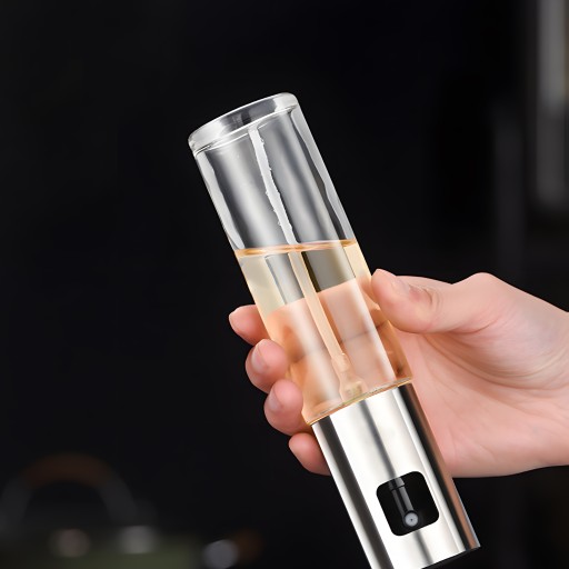 Spryskiwacz do oleju wykonany z wysokiej jakości stali nierdzewnej i szkła, wolny od BPA, przyjazny dla środowiska i bezpieczny dla żywności. Dzięki unikalnej konstrukcji zapewnia równomierne rozpylanie oliwy lub octu, co pozwala na oszczędzanie oleju i precyzyjne dawkowanie. To rozwiązanie wspomaga zdrową dietę, umożliwiając kontrolę ilości tłuszczu w potrawach.