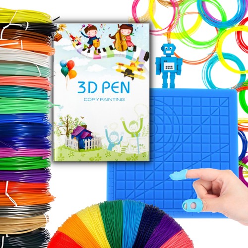 АКСЕССУАРЫ ДЛЯ 3D ШАРИКОВОЙ РУЧКИ 200М ФИЛАМЕНТНЫЙ РЕФИЛЬ + КОВРИК + КНИГА С ШАБЛОНАМИ