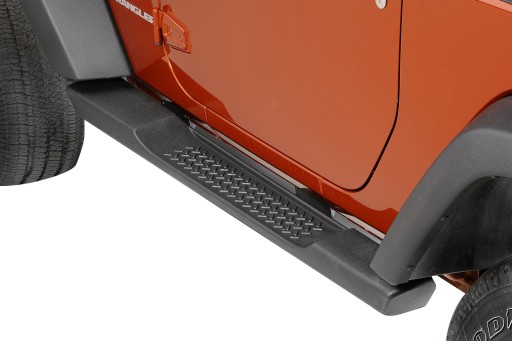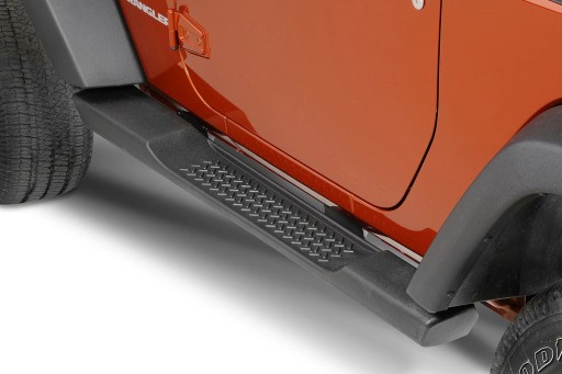 Model ten zaprojektowany został tak, aby tworzyć jednolitą całość z bryłą nadwozia - dzięki czemu progi nie tylko pełnią swą praktyczną funkcję, ale także znakomicie uzupełniają pełną off-roadowego charakteru stylizację Wranglera.