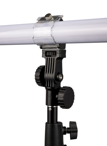 Ergonomiczna konstrukcja panelu kontrolnego bazującego na wyraźnym ekranie LCD, przyciskach i specjalnym pokrętle pozwala szybko i wygodnie zmieniać ustawienia światła. W zestawie z lampą znajdziesz specjalny uchwyt montażowy kompatybilny z gwintem 1/4". Przezroczysta obejma umożliwi wygodną instalację, bez ryzyka, że jakiś fragment świetlnej tuby zostanie zasłonięty. Uchwyt wyposażono w przegub pozwalający pochylić lampę i precyzyjnie dostosować jej ustawienie do bieżących potrzeb.