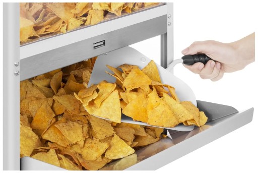 Praktyczna, wyprofilowana szufelka ze stali nierdzewnej, znajdująca się w zestawie, posiada ergonomiczny kształt. Zapewnia wygodne zbieranie i pakowanie nachos do torebek. Zagięte krawędzie chronią snacki przed zsuwaniem się podczas nakładania.Doskonałą kombinacją może być połączenie nachos z gorącymi sosami (np. chilli i roztopionym serem), które podgrzejesz w bemarach. Inna opcja to przygotowanie burritos; jego temperaturę podtrzymasz także w bemarach, i serwowanie dania razem z nachos. W ten sposób stworzysz bufet w prawdziwie meksykańskim stylu!