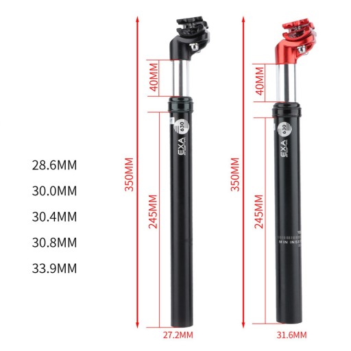 Sztyca Rowerowa Ze Aluminium Podsiodłowa Z Tłumieniem Ciśnienia Oleju 31,6 Mm Czarny Czerwony Czarny