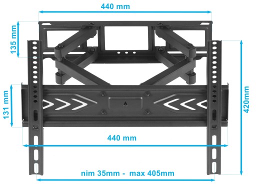 - dzięki długim podwójnym ramionom telewizor można zainstalować w dowolnej pozycji
